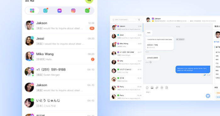 Aggregate messages from mainstream instant communication tools such as WhatsApp, Messenger, Instagram, etc., and communicate in real time in 200+ languages to easily solve foreign trade communication problems.
